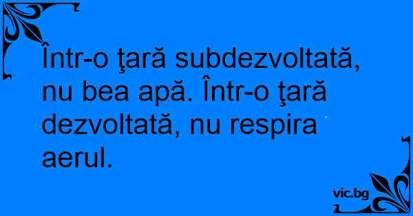 Într-o ţară subdezvoltată, nu bea apă. Într-o ţară dezvoltată, nu respira aerul.