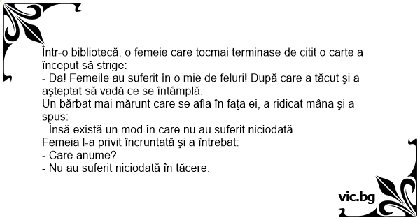 - Da! Femeile au suferit în o mie de feluri! După care a tăcut şi a aşteptat să vadă ce se întâmplă.