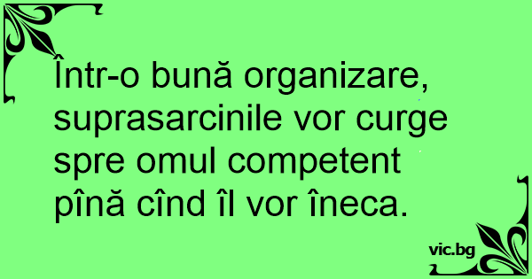 Într-o bună organizare, suprasarcinile vor curge spre omul competent pînă cînd îl vor îneca.