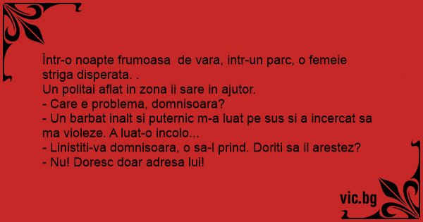 Într-o noapte frumoasa de vara, intr-un parc, o femeie striga disperata. .
