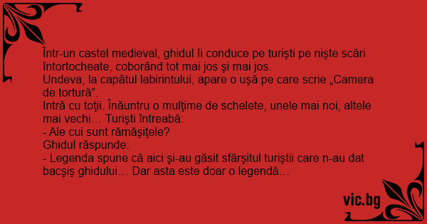 - Legenda spune că aici şi-au găsit sfărşitul turiştii care n-au dat bacşiş ghidului… Dar asta este doar o legendă…