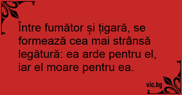 Între fumător și țigară, se formează cea mai strânsă legătură: ea arde pentru el, iar el moare pentru ea.