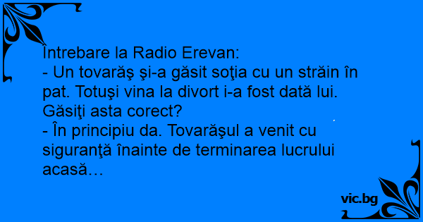 - Un tovarăş şi-a găsit soţia cu un străin în pat. Totuşi vina la divort i-a fost dată lui. Găsiţi asta corect?