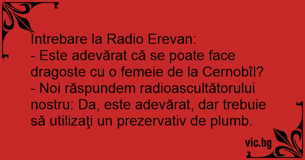 - Noi răspundem radioascultătorului nostru: Da, este adevărat, dar trebuie să utilizaţi un prezervativ de plumb.