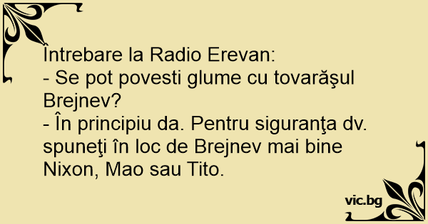 - În principiu da. Pentru siguranţa dv. spuneţi în loc de Brejnev mai bine Nixon, Mao sau Tito.
