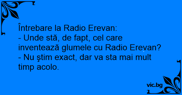 - Unde stă, de fapt, cel care inventează glumele cu Radio Erevan?