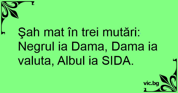 Şah mat în trei mutări: Negrul ia Dama, Dama ia valuta, Albul ia SIDA.