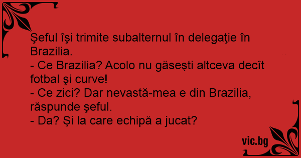 - Ce zici? Dar nevastă-mea e din Brazilia, răspunde şeful.