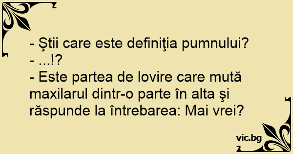 - Este partea de lovire care mută maxilarul dintr-o parte în alta şi răspunde la întrebarea: Mai vrei?