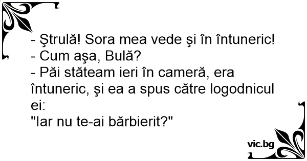 - Păi stăteam ieri în cameră, era întuneric, şi ea a spus către logodnicul ei: