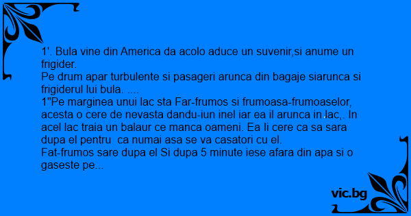 1'. Bula vine din America da acolo aduce un suvenir,si anume un frigider.