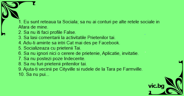 1. Eu sunt reteaua ta Sociala; sa nu ai conturi pe alte retele sociale in Afara de mine.
