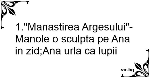 1."Manastirea Argesului"-Manole o sculpta pe Ana in zid;Ana urla ca lupii