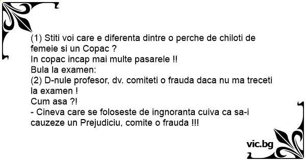 (2) D-nule profesor, dv. comiteti o frauda daca nu ma treceti la examen !