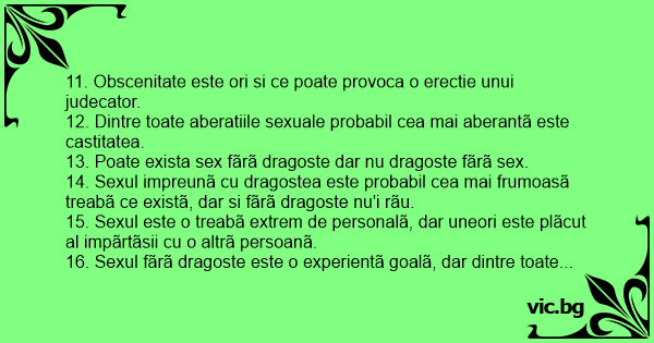15. Sexul este o treabã extrem de personalã, dar uneori este plãcut al impãrtãsii cu o altrã persoanã.