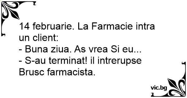 14 февраля, аптека. - Здравствуйте! - Закончились!