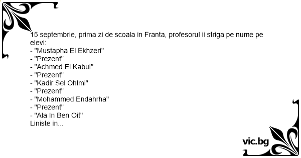 15 septembrie, prima zi de scoala in Franta, profesorul ii striga pe nume pe elevi: