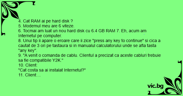 8. Unui tip ii apare o eroare care ii zice "press any key to continue" si cica a cautat de 3 ori pe tastaura si in manualul calculatorului unde se afla tasta "any key".
