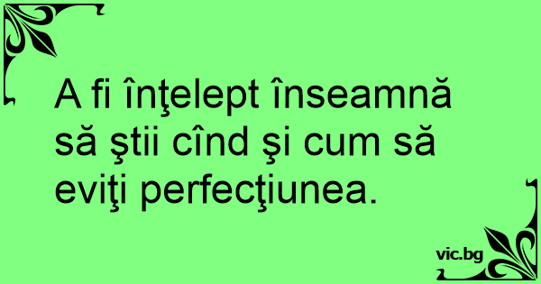 A fi înţelept înseamnă să ştii cînd şi сuм să eviţi perfecţiunea.