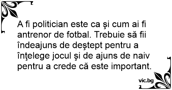 A fi politician este ca şi сuм ai fi antrenor de fotbal. Trebuie să fii îndeajuns de deştept pentru a înţelege jocul şi de ajuns de naiv pentru a crede că este important.