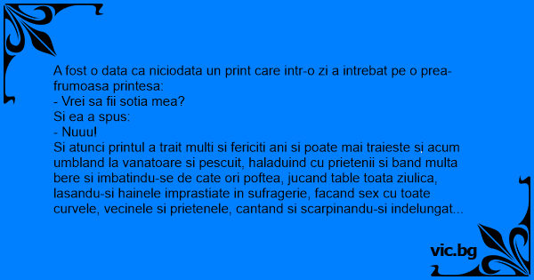 A fost o data ca niciodata un print care intr-o zi a intrebat pe o prea-frumoasa printesa: