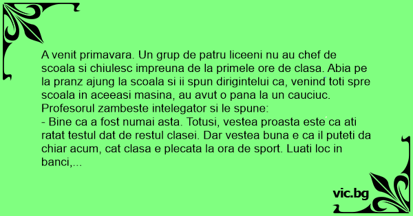 Elevii se pregatesc de test. Profesorul incepe: