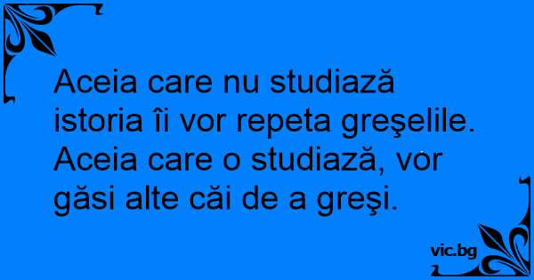 Aceia care nu studiază istoria îi vor repeta greşelile. Aceia care o studiază, vor găsi alte căi de a greşi.