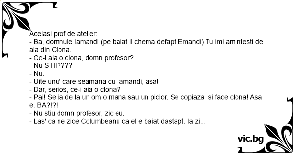 - Ba, domnule Iamandi (pe baiat il chema defapt Emandi) Tu imi amintesti de ala din Clona.