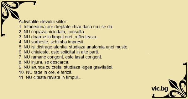 11. NU citeste reviste in timpul orelor, se informeaza.