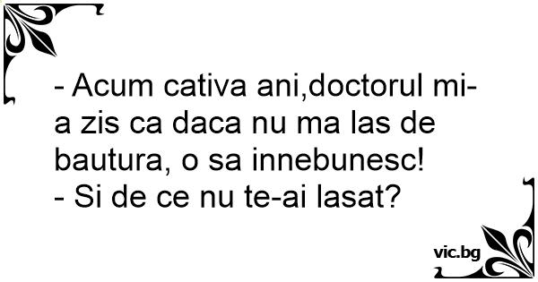 - Acum cativa ani,doctorul mi-a zis ca daca nu ma las de bautura, o sa innebunesc!
