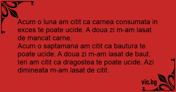 Acum o saptamana am citit ca bautura te poate ucide. A doua zi m-am lasat de baut.