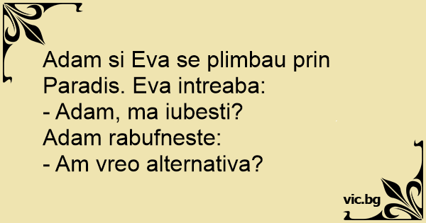 Adam si Eva se plimbau prin Paradis. Eva intreaba: