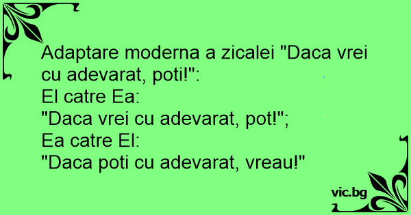 Adaptare moderna a zicalei "Daca vrei cu adevarat, poti!":
