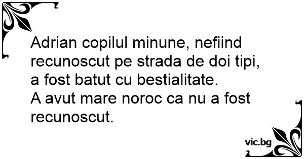 Adrian copilul minune, nefiind recunoscut pe strada de doi tipi, a fost batut cu bestialitate.