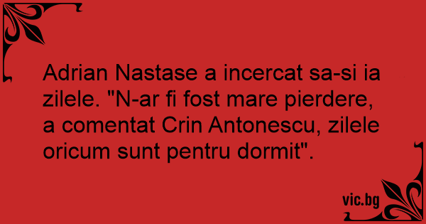 Adrian Nastase a incercat sa-si ia zilele. "N-ar fi fost mare pierdere, a comentat Crin Antonescu, zilele oricum sunt pentru dormit".