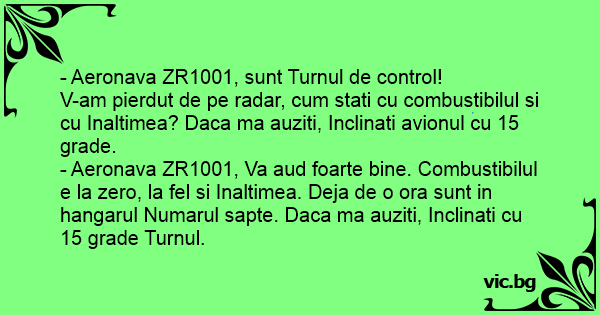 - Aeronava ZR1001, sunt Turnul de control!