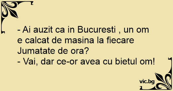 - Ai auzit ca in Bucuresti , un om e calcat de masina la fiecare Jumatate de ora?
