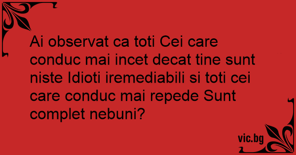 Ai observat ca toti Cei care conduc mai incet decat tine sunt niste Idioti iremediabili si toti cei care conduc mai repede Sunt complet nebuni?