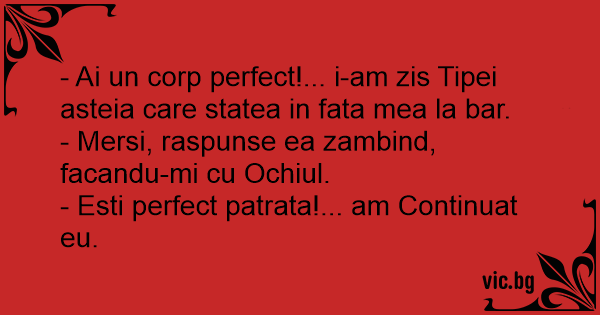 - Ai un corp perfect!... i-am zis Tipei asteia care statea in fata mea la bar.