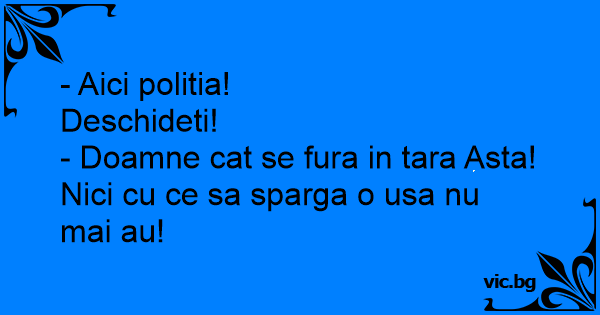 - Doamne cat se fura in tara Asta! Nici cu ce sa sparga o usa nu mai au!