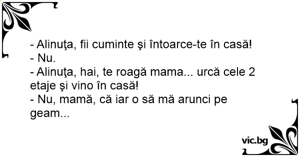 - Nu, mamă, că iar o să mă arunci pe geam...