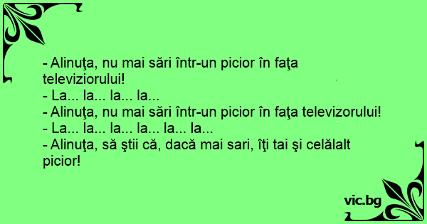 - Alinuţa, nu mai sări într-un picior în faţa televiziorului!