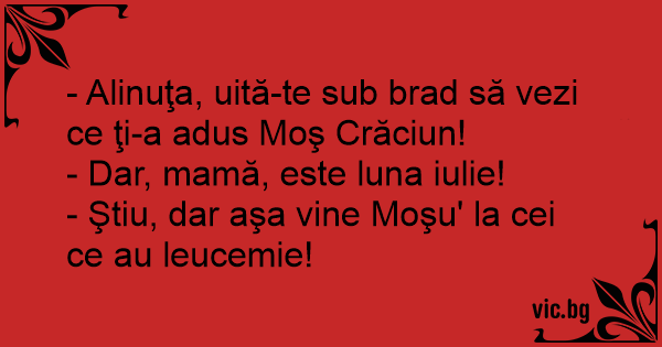 - Ştiu, dar aşa vine Moşu' la cei ce au leucemie!