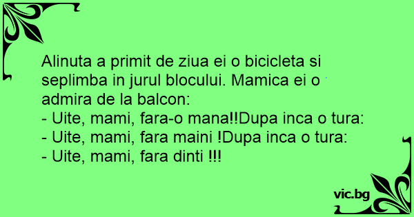 - Uite, mami, fara-o mana!!Dupa inca o tura: