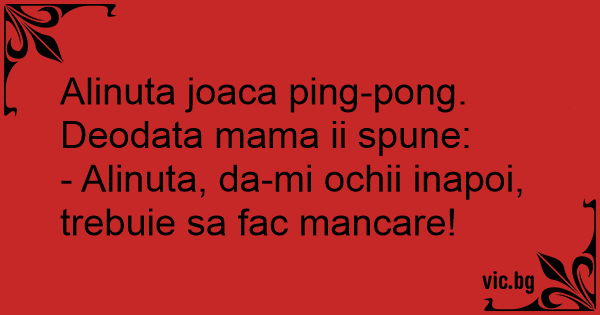 Alinuta joaca ping-pong. Deodata mama ii spune:
