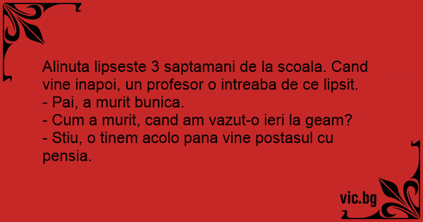 - Stiu, o tinem acolo pana vine postasul cu pensia.