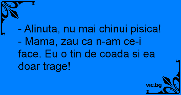 - Mama, zau ca n-am ce-i face. Eu o tin de coada si ea doar trage!