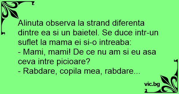 - Mami, mami! De ce nu am si eu asa ceva intre picioare?