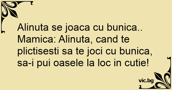Mamica: Alinuta, cand te plictisesti sa te joci cu bunica, sa-i pui oasele la loc in cutie!