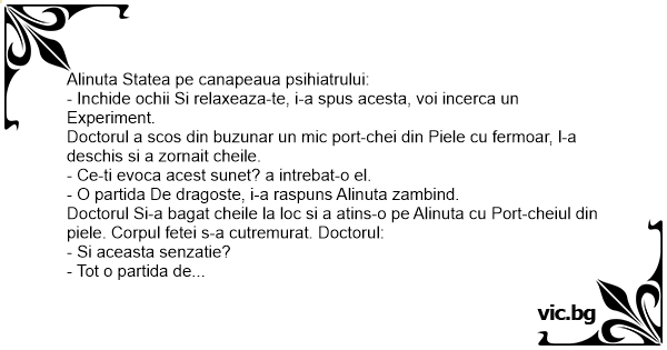 - Acum deschide Ochii, i-a spus doctorul, explica-mi de ce ti-au evocat cele Doua senzatii o partida de dragoste.